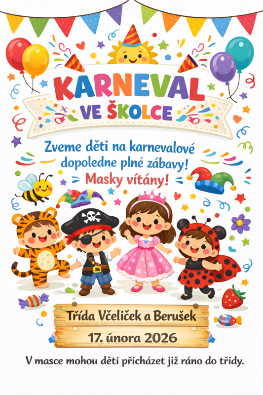17. 2. 2026 - KARNEVAL VE ŠKOLCE (VČELIČKY A BERUŠKY)