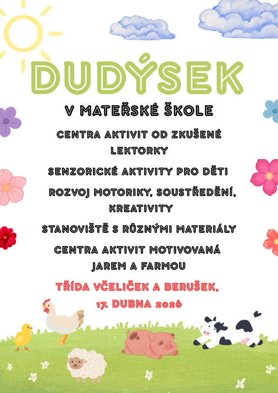 17. 4. 2026 - DUDÝSEK V MŠ: JARO/FARMA (VČELIČKY A BERUŠKY)