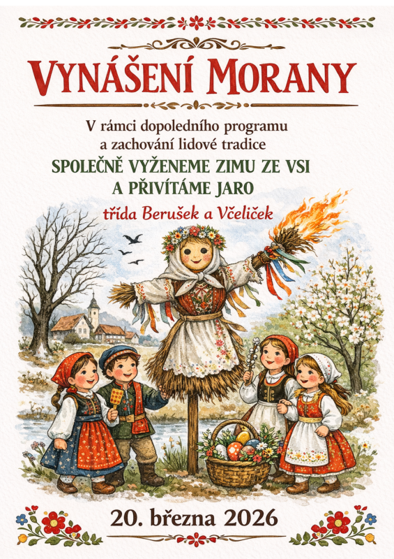 20. 3. 2026 - PROJEKTOVÝ DEN: VYNÁŠENÍ MORANY V MŠ (BERUŠKY A VČELIČKY)