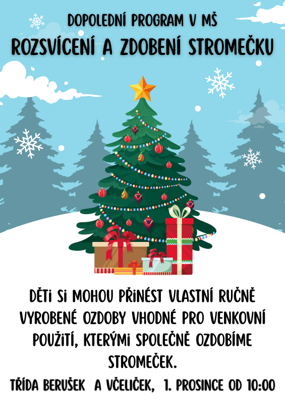1. 12. 2025 - DOPOLEDNÍ PROGRAM V MŠ: ROZSVÍCENÍ A ZDOBENÍ STROMEČKU