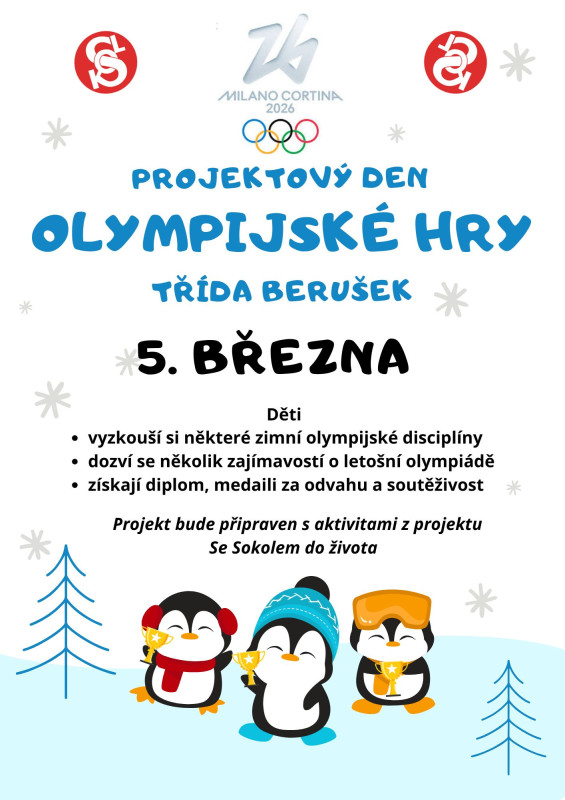 20. 2. 2026 - Olympiáda v MŠ se z důvodu vysoké nemocnosti dětí se akce přesouvá na 5. března